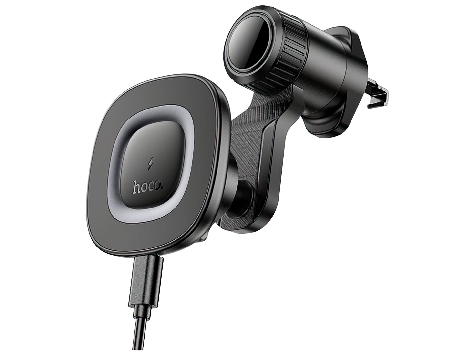 HOCO HW30 is a car holder with integrated wireless charging, designed to be mounted directly on the ventilation grill,