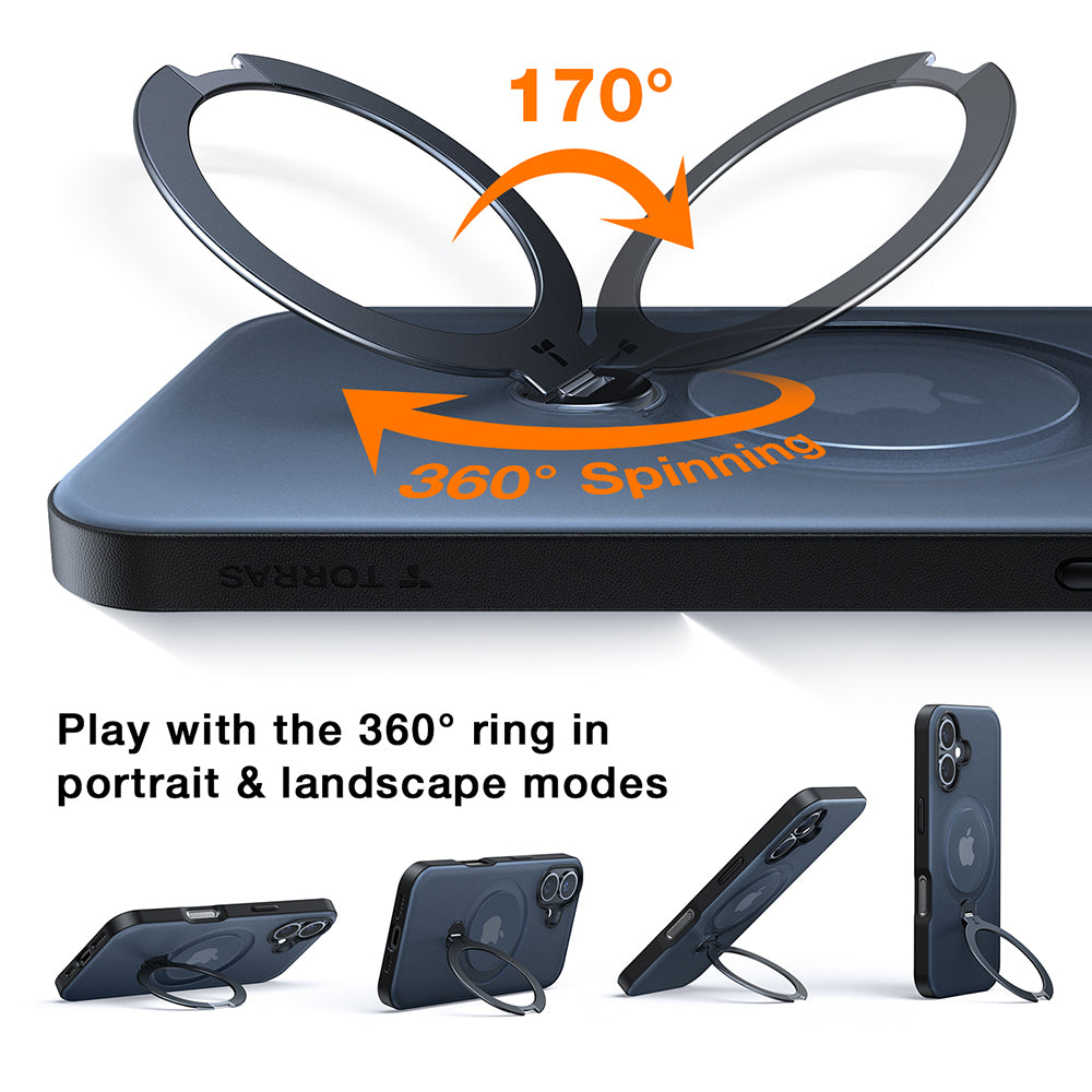 MagSafe Case for Apple iPhone 16, Torras, Ostand Spin, Transparent