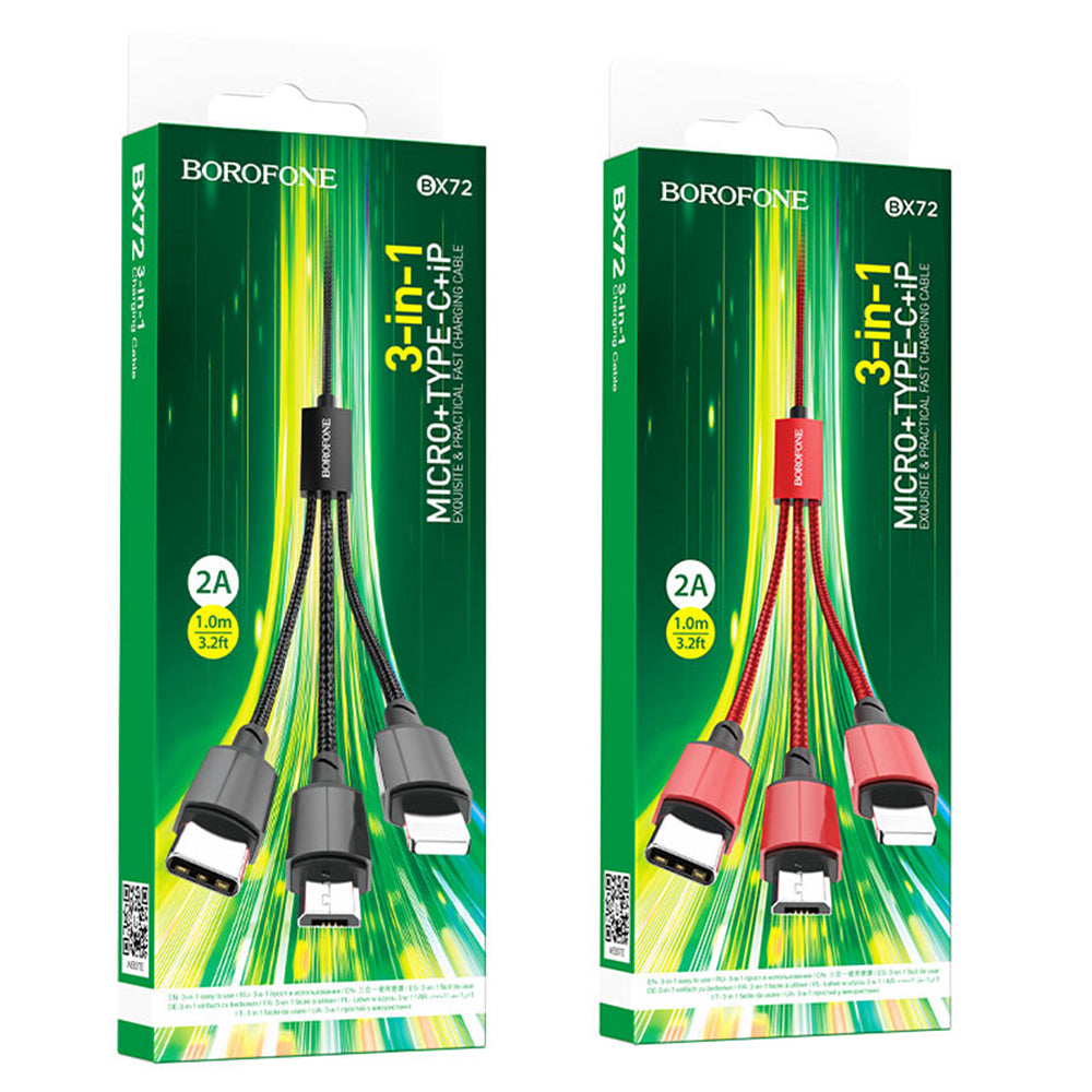 USB-A Charging Cable - Lightning / microUSB / USB-C Borofone BX72, 18W, 1m, Black