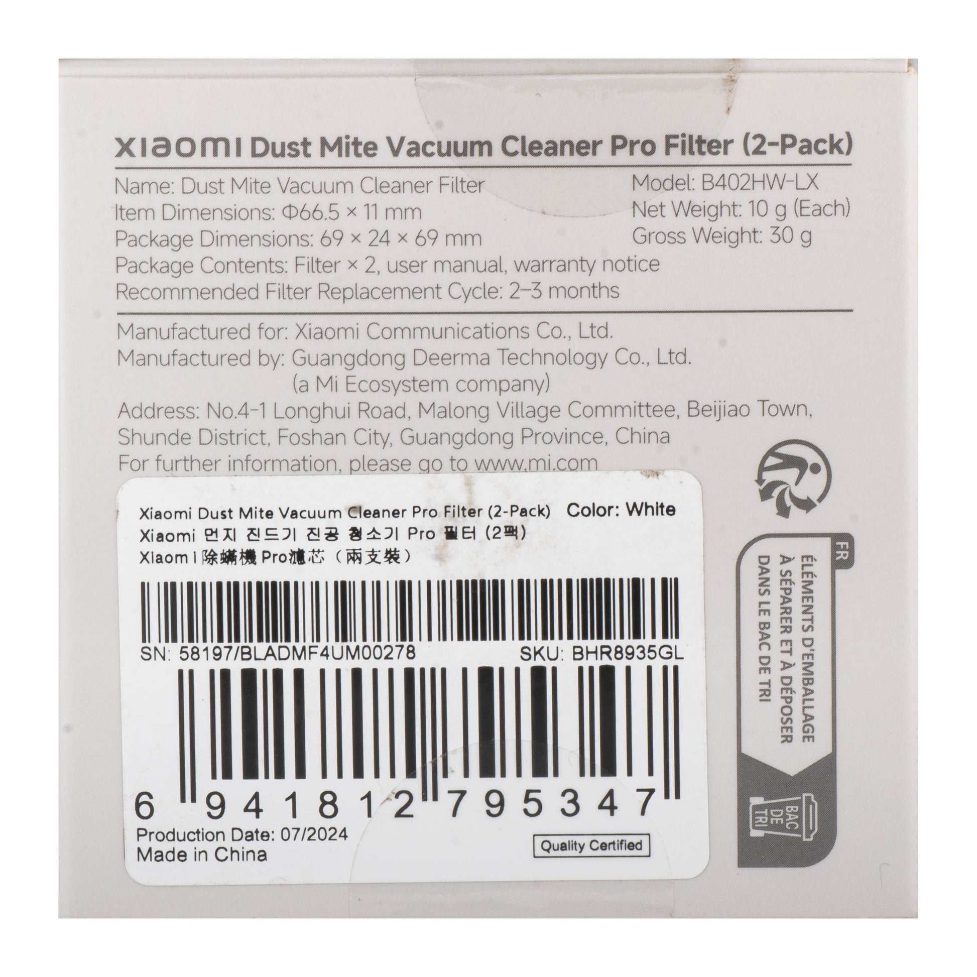 | Pack | Blister |