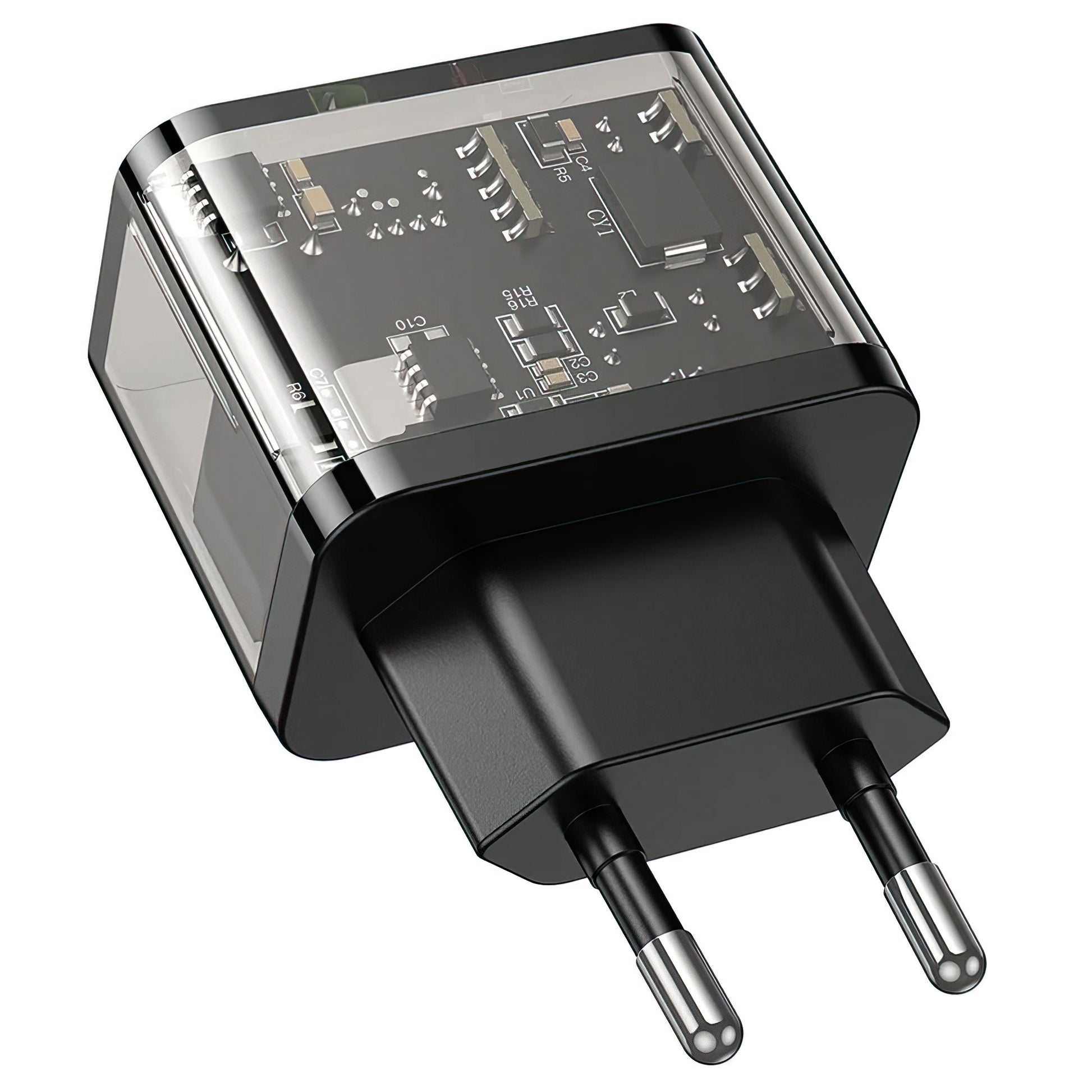 Hoco N34 ist ein transparentes Wandladegerät mit Schnellladefunktion und Doppelausgang, ideal für die effiziente Stromversorgung von zwei