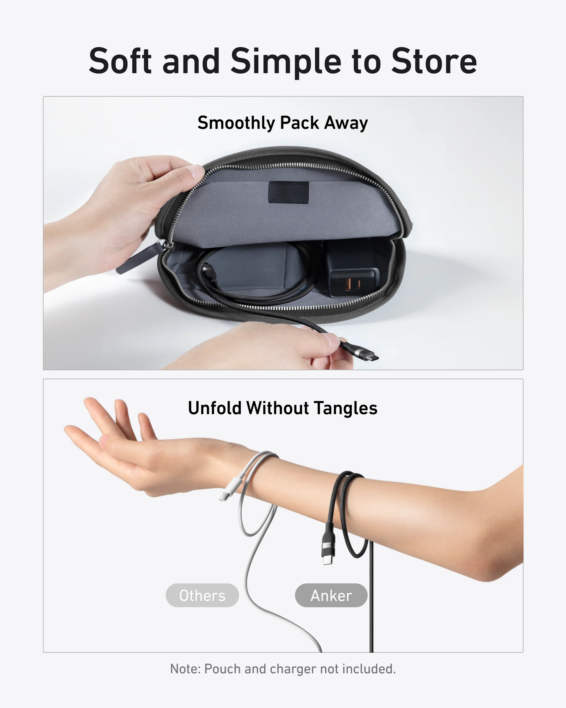 Tablets und USB-C Laptops. Seine weiche, aus recyceltem Nylon (PCR) geflochtene Konstruktion gewährleistet außergewöhnliche Haltbarkeit,